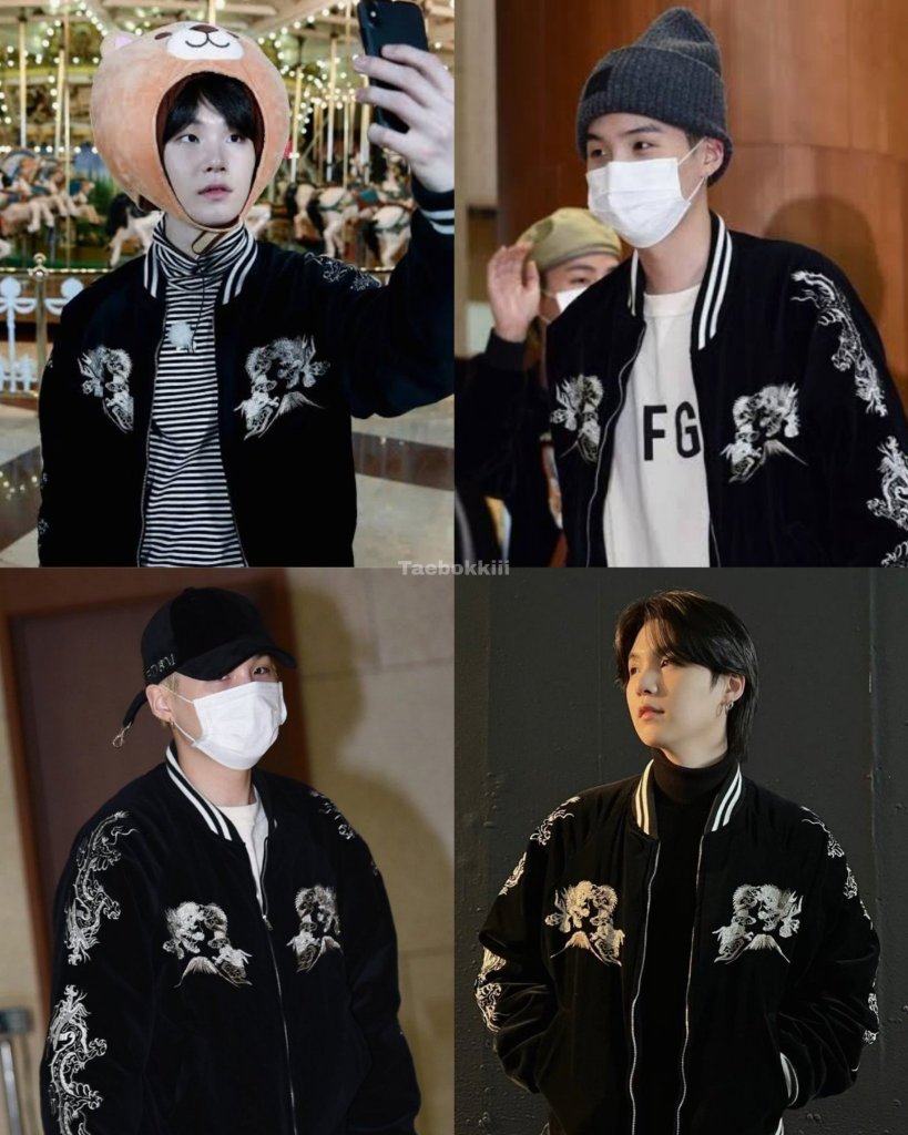 “BTS’ SUGA recently posted a photo on his Instagram account. It was just as simple photo but one thing that ARMY noticed was the black baseball jacket that he was wearing. It is a jacket that he has been seen wearing a couple of times in the past. He wore the exact same jacket during a Vlive, he was seen with the jacket at the airport and even in one of the run BTS episodes.
