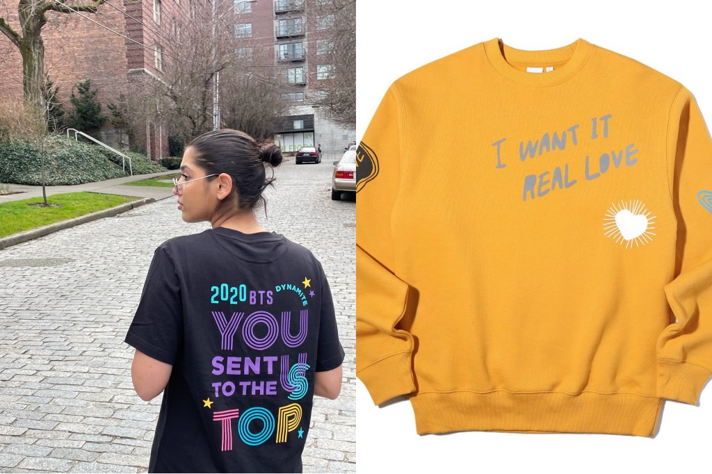 The collection of BTS THEMED MERCH will include an assortment of BTS clothing: hoodies, shirts, sweaters, sweatpants, hats and more. There will also be an assortment of BTS accessories like keychains, stickers, photo cards and pens.