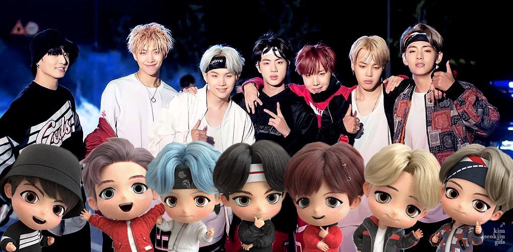TinyTAN (formerly known as BTS Character) are animated characters based on BTS and created by Big Hit Entertainment. The brand was launched on October 13, 2019 via Big Hit Official Merchon Twitter as part of the exclusive merch of the BTS Pop-Up: House of BTS. The characters outfits and hairstyle was originally based on the “IDOL” music video, but in 2020 the characters were launched with the looks from the “MIC Drop” music video
