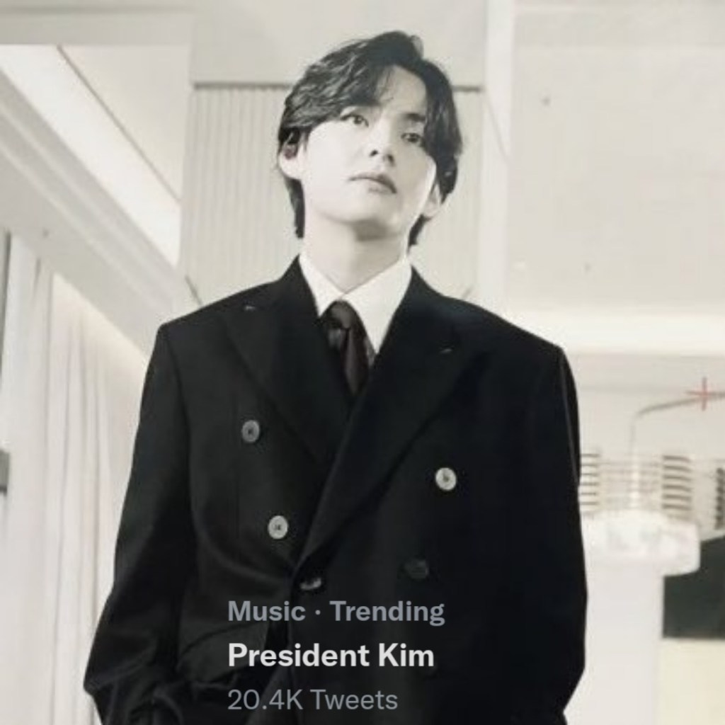 “V has posted a new update on his isntagram account that is breaking the internet. On 15th March V posted several photos of what looks like a photo shoot for an ad campaign in black and white and captioned it “Mr. President” and now fans are going Gaga! Over the new photos and “President Kim” is already trendning with over 20K Twitter Mentions. The post has already garnered 5+ million likes in just a few minutes.