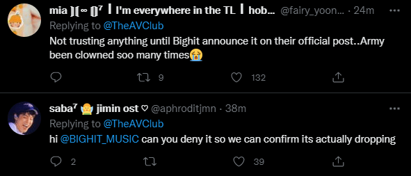 It wouldn’t be far fetched if the two great artists collaborated since BTS have always said that hiphop influenced them greatly and in their song “Hip Hop phile” RM referenced to Snoop Dog’s album “Doggystyle” and j-hope shared the rapper’s performance during this year’s Superbowl. Was that a hint aka spoiler? But fans are being cautious and are waiting for any other official confirmation before they get their excitement and hopes up. BTS ARMYs say they do not want to be clowned and some say that they will only believe it if BigHit denies the news. What do you think? are the rumors true or should we stem the excitement until more info comes along? Here are some reactions that are both hopeful but cautious of the news