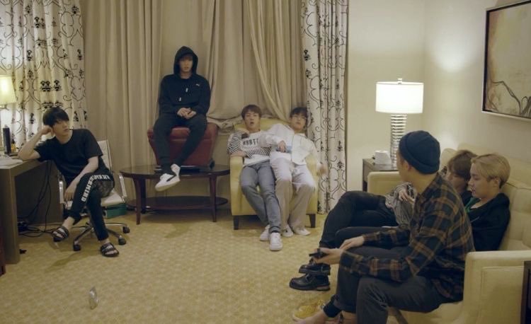 We all know BTS are literal soulmates who have no desire or need or even respect for each other’s personal space. You will see them literally cramped on one sofa when there are other sofas or seats or be stuck so close together leaving extra space on the same sofa. It’s like being separated from each other is a physical pain.