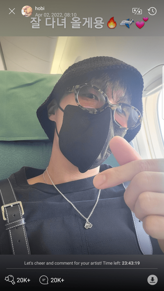 To share the moment with his fans, j-hope posted a photo on Weverse stories, showing himself aboard the plane as he made his way to the U.S. With a warm smile, j-hope’s casual, yet excited demeanor in the picture gave fans a sense of connection, reminding them that despite the glamour and grandeur of his career, he remains as down-to-earth and engaging as ever. Fans flooded the comments, expressing their love and support for the rapper, sharing their excitement for the upcoming events, and wishing him a smooth flight.