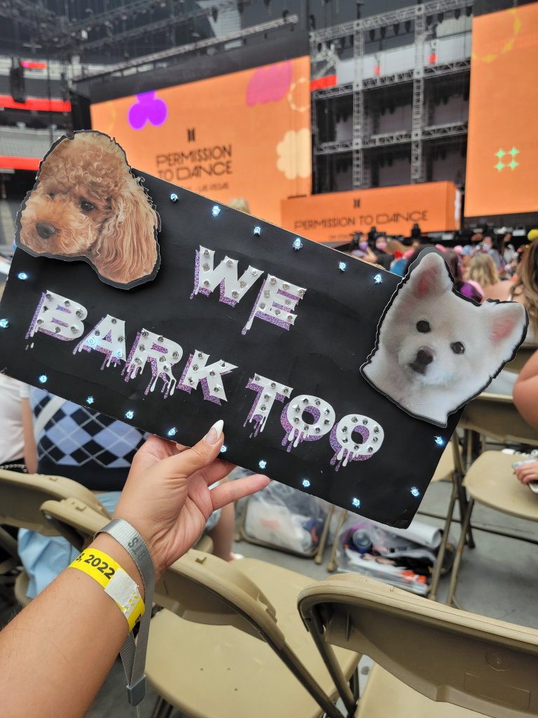 “Day 1 starts off BTS’ four day stint in Las Vegas for their four sold out shows. The members gave an outstanding performance, incredible speeches and overall looked hot as usual. But one thing that fans always look foward to are the signs and or banners that ARMYs bring to the concert. They are usually creative, funny, sometimes cringy but they make the concerts fun. The signs go from the innocent and inspiring to blush worthy statements. It was no surprise that “YOONGI MARRY ME” was the favorite banner as many fans were seen carrying them, with some even wearing a veil as they carried the signs.