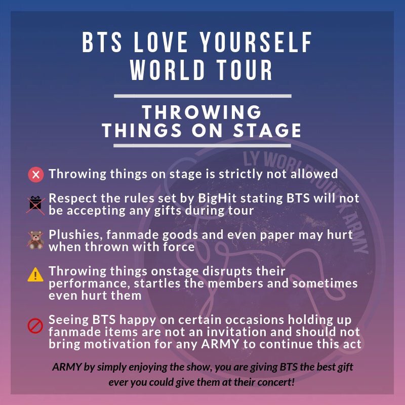 It seems HYBE will have to set back the rules that were being used during BTS’ Love Yourself concerts where fans were urged not to throw things on stage. It is distracting and both dangerous to BTS and even other fans.