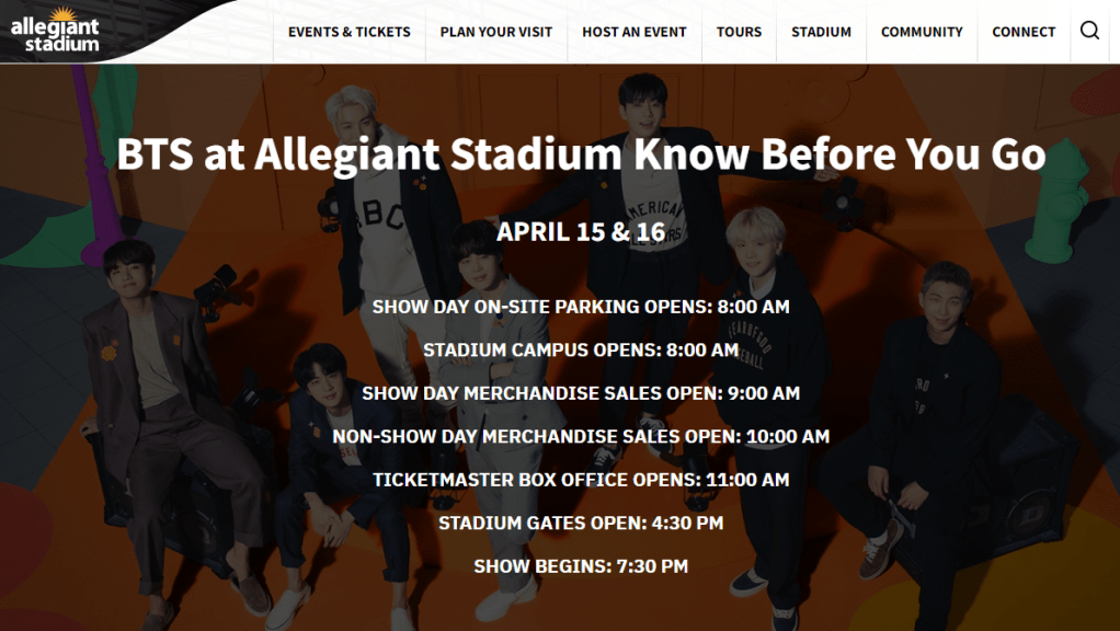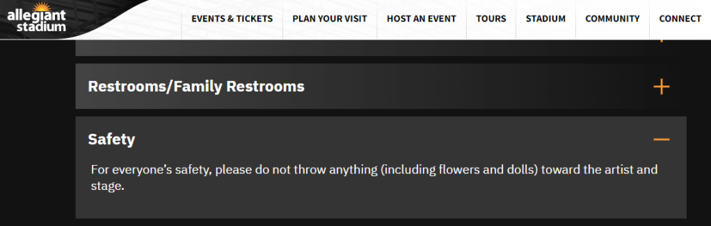 “Allegiant Stadium has updated their safety policy. On their webpage about Safety section, they wrote “For everyone’s safety. Please do not throw any items (including flowers and dolls) toward the artist and stage.” Allegiant Stadium added this because the amount of items that were thrown and could potentially injure the BTS members was actually insane. Each fan needs to be more respectful to the BTS, the attended and even the staff, as it is the staff who will have to clear the mess left behind by concert goers.