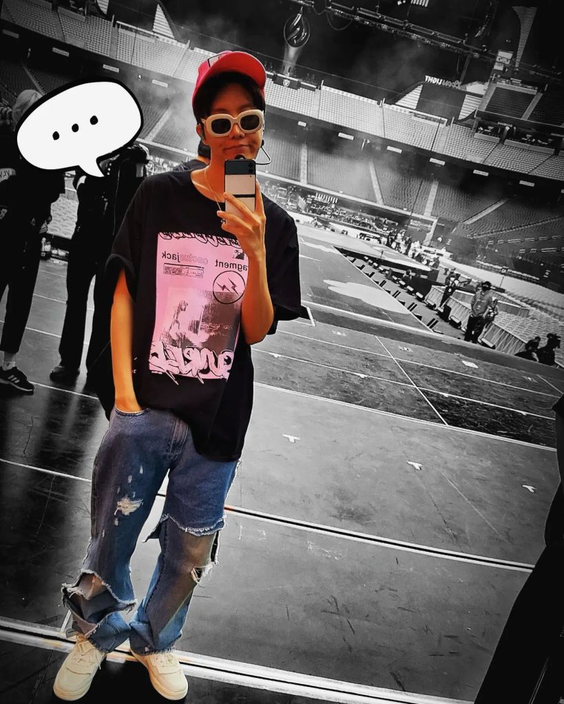 “BTS’ j-hope is keeping with the tradition of sharing clips of their soundcheck for their ongoing “Permission to Dance on Stage concerts in Las Vegas. He shared for Day One and Two where he had a selfie picture with Jung Kook but for day three he posted a photo of him alone. He did not caption the photo, simply added a speaking quote cloud with three dots.