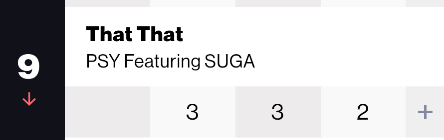 “Stay Alive” Even by Jung Kook prod. SUGA was at no. 5 while V’s “Christmas Tree” took position no. 6. Even though “THAT THAT” by PSY prod. & Feat SUGA dropped a position, it’s still in the top ten.