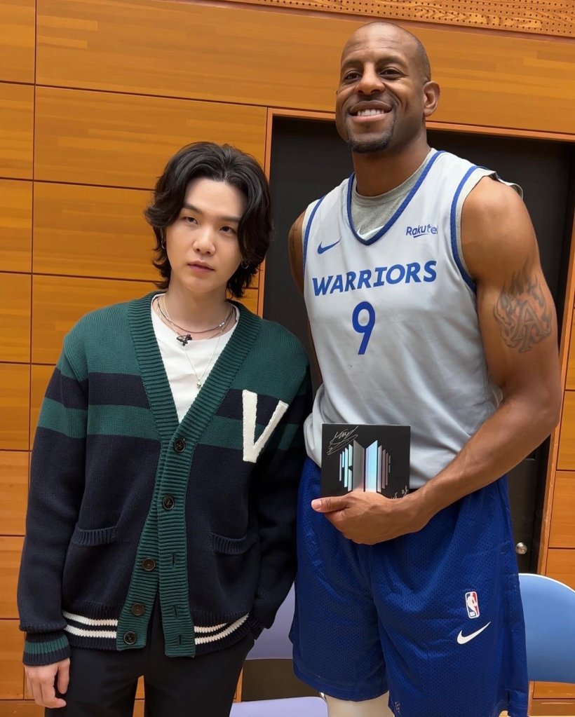 “BTS’ SUGA is still trening over 24 hours later after pics of him meeting the “Warriors” NBA basketball players. SUGA is currently in Japan and he is supposedly gouing to watch the matches that will be happening. Fans have been excited seeing SUGA meet the basketball greats as he himself is an avid basketball fan. He played in high school and during Korea’s Idols championship games. Many official NBA accounts shared the photos and clips and they have been gong viral as fans celebrate the rapper being able to enjoy a sport that is close to his heart.