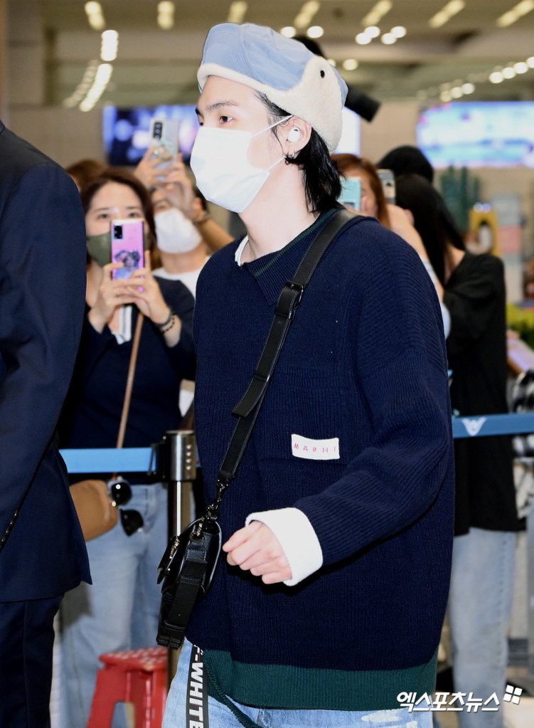 “BTS’ SUGA finally landed back home in South Korea after his exciting trip to Japan. SUGA attended the NBA basketball games and got to hang out with some of the palyers forn the “Warriors” team. He got signesd jerseys and Stephen Curry gifted him unreleased game worm shoes. And teh K-media are in love with SUGA, giving him cute nicknames in tehri articles. Hedlines like, “look and his skin today”. and gave him some really adorable headline like “Deadly Cute”, “Shining Cuteness”, “Milk Coloured Min Yoongi”, “Shiny Honey Skin”