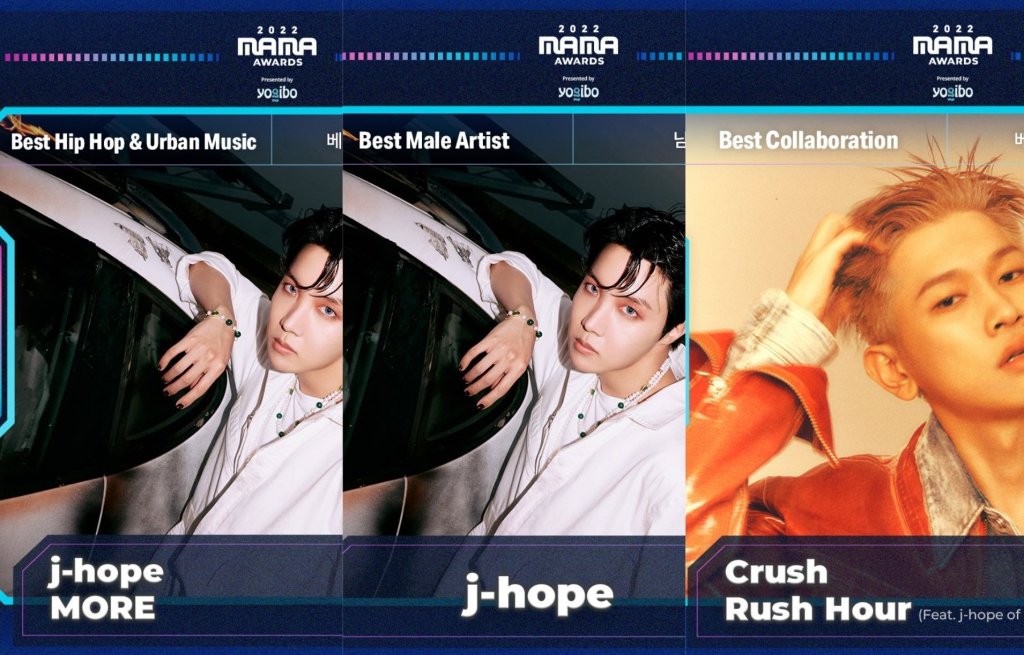 “BTS’ j-hope has been nominated for ‘Artist of the Year (Daesang)’ making him the first and currently the only Male Soloist to have 3 nominations with a Main Category (4 nominations overall) at the 2022 MAMA Awards.BTS member J-hope will attend MAMA 2022 Day 2 on November 30 at 6pm KST/4am ET for the main ceremony. j-hope is the first member in BTS to receive solo nominations in the MAMA Awards 2022.