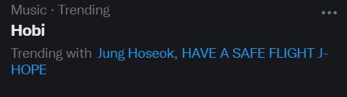 “Hobi”, “Jung Hoseok”, and “HAVE A SAFE FLIGHT J-HOPE” currently trending as ARMY wishes the BTS rapper a safe light to and from Japan