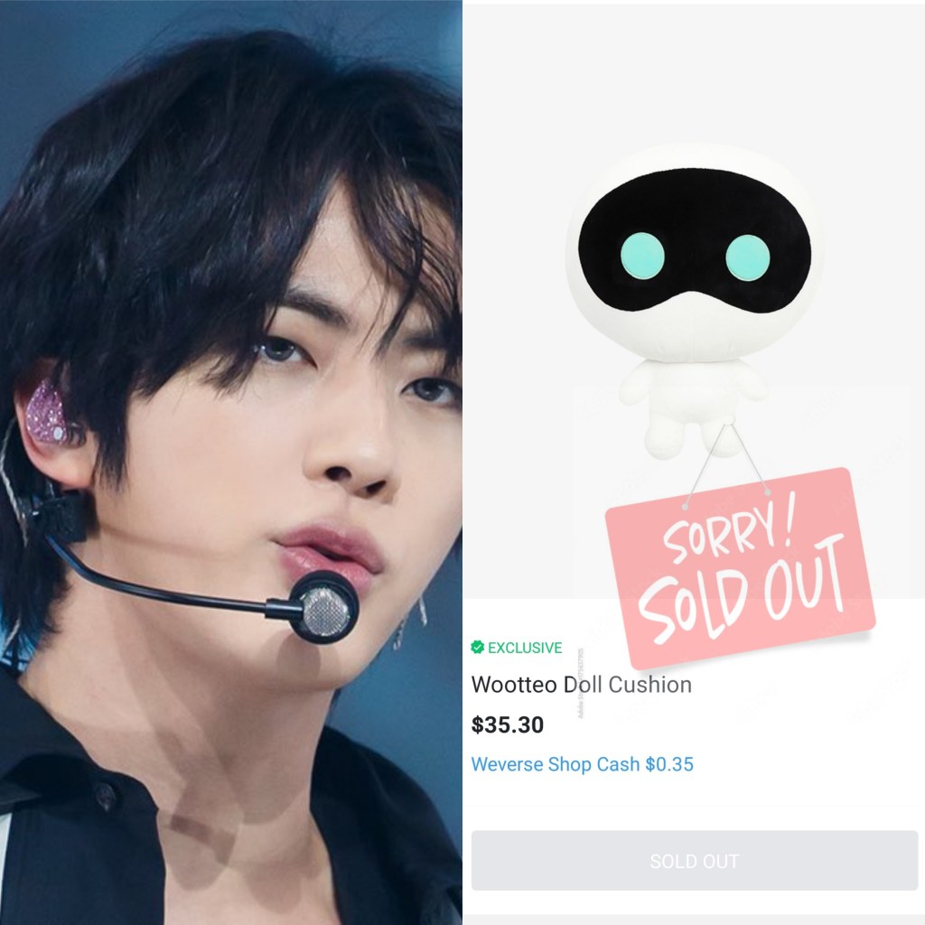 “BTS’ Jin is undoubtedly the King of Sold Out. His Midas touch is always evident in items that he touches. His Pajama and pillow set he personalized sold out within second of being released. Jin’s ‘The Astronaut’ Official Merch Set-Up Hoodie and Jogger Pants also sold out now. Jin ‘The Astronaut’ Official Merch Wootteo Body Pillow was sold out in less than 10 minutes since its release .