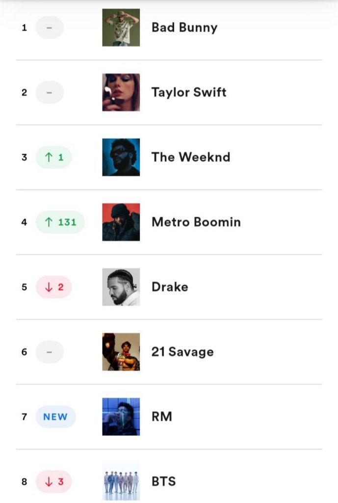 “BTS’ RM makes his first ever appearance on the Global Spotify Artist Chart, debuting at #7 following the release of his much anticipated album ‘Indigo’. ‘RM of BTS’ joins ‘J-Hope of BTS’ as the only K-Soloist to enter Top 10 on “Daily Top Artists Global” RM defined “Indigo” as “Record of RM : Indigo. From the colors of nature, human, etc. Documentation of my youth in the moment of independent phase. Sun-bleached record faded like old jeans”. The last archive of my twenties”
