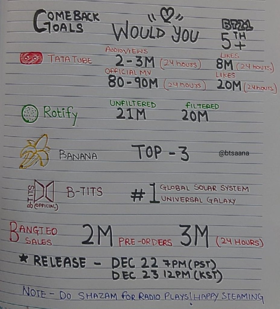 We even have streaming goals for the MV!