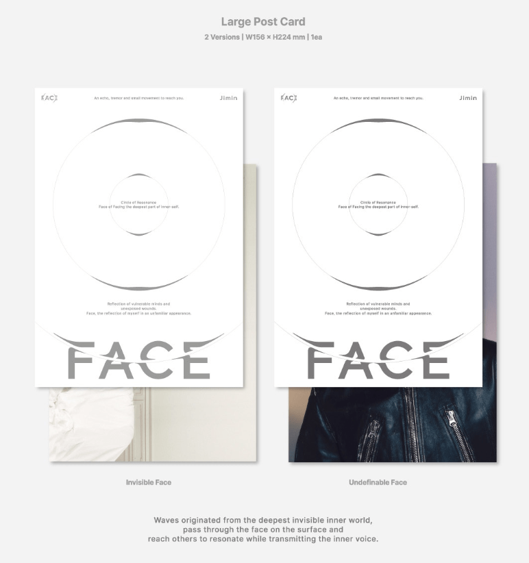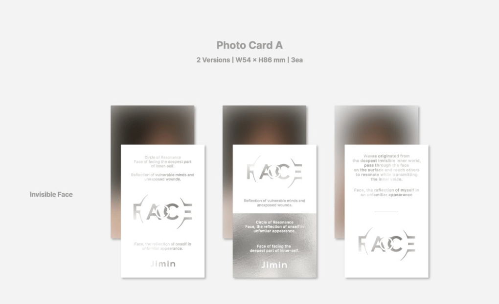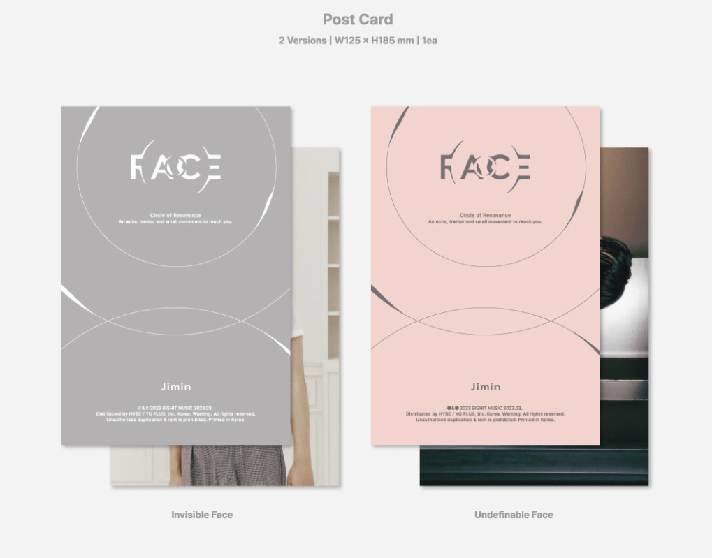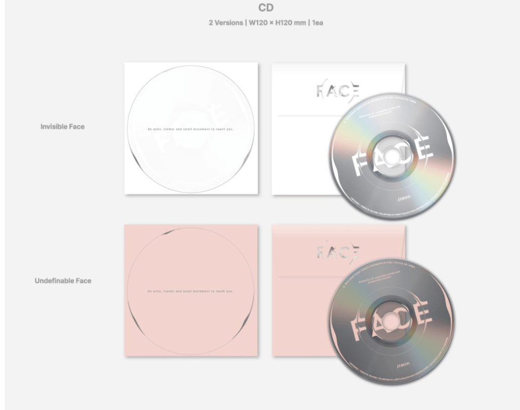 “BTS Jimin’s album will be dropping next month, and it will be having 2 versions, “Invisible Face” and ” Undefinable Face” BIGHIT recently announced Jimin’s first ever solo album will be coming in various stores with pre orders starting on 22nd February to March 23rd. the album comes packaged with goodies as expected, from photo cards to lyrics notes to a beautifully designed box, “FACE” is definitely an album to look forward to.