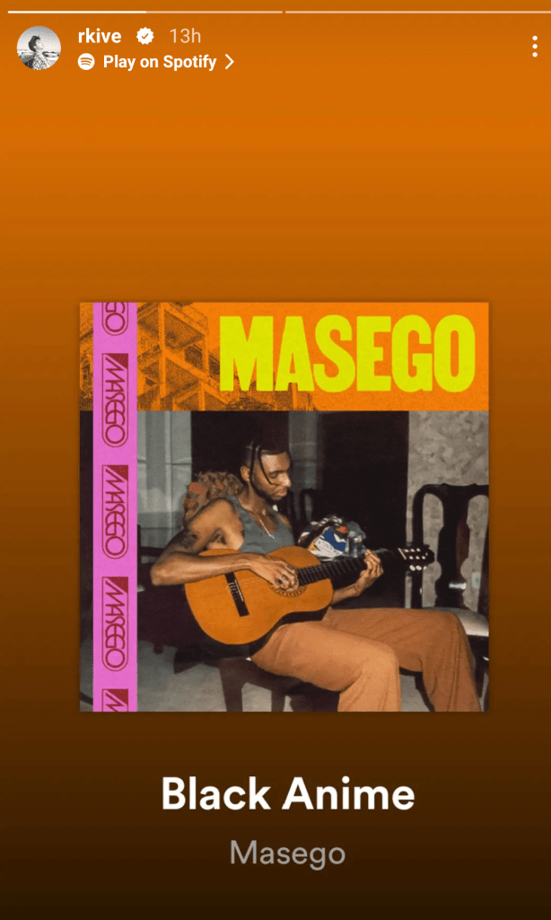 “BTS’ RM shared on his Instagram stories another artist he is currently listening to. The song he shared is called “Black Anime” by Masego. “Micah Davis, known professionally as Masego, is a Jamaican-American musician and singer known for incorporating the saxophone into his music. Masego released two EPs in 2016, The Pink Polo EP with Medasin, and Loose Thoughts. He gained widespread attention with his collaborative record with FKJ called “Tadow” in 2017. In 2018, he released his debut album Lady Lady.