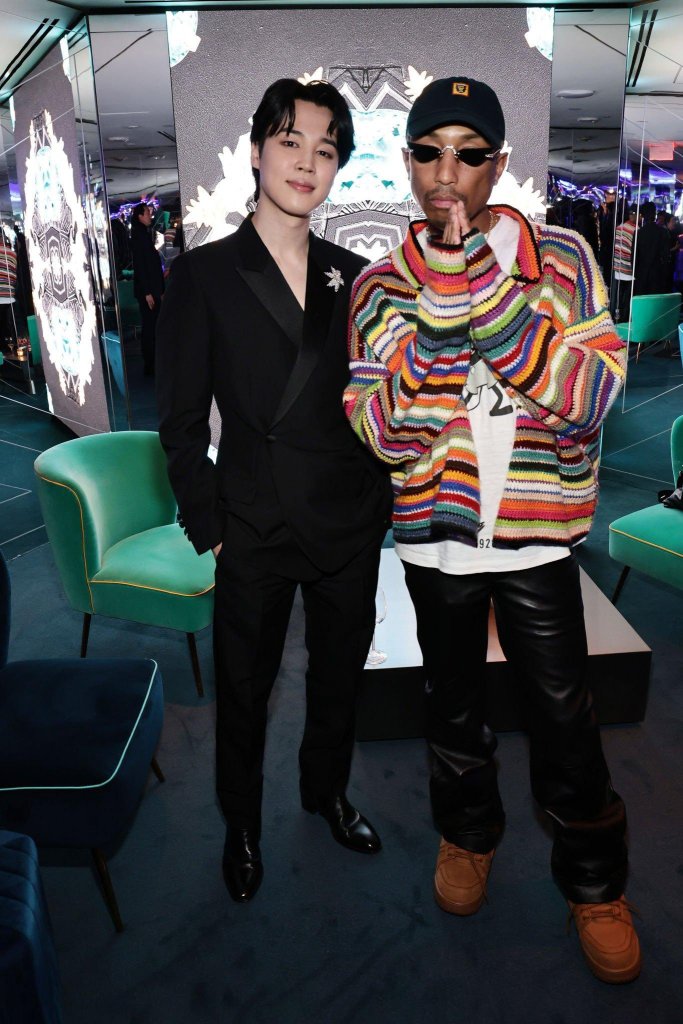 “On 28thApril, BTS’ Jimin Attends the Grand Reopening of a Tiffany & Co. store In New York City. The event was graced by various celebrities, artists, designers, actors, Lee jung-jae, actresses and Jimin was among the guests as one of Tiffany & Co.’s global brand ambassador. Jimin was spotted with American rapper, and producer Pharrell. Jimin met Pharrell back in 2018 at the Billboard Music Awards and Pharrell even did an interview with RM for a Rolling Stone Magazine issue.