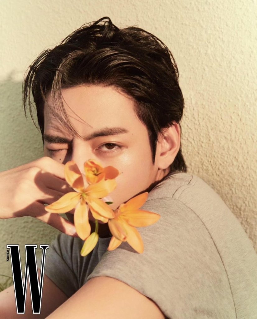 In previous photoshoots, V has often talked about how he draws inspiration from nature, and this spring-themed shoot is a perfect example of how his love for the natural world influences his work. Whether he’s in front of the camera as a model or behind it as a photographer, V has a remarkable ability to capture the beauty of the world around him.