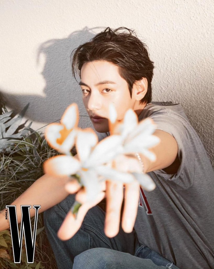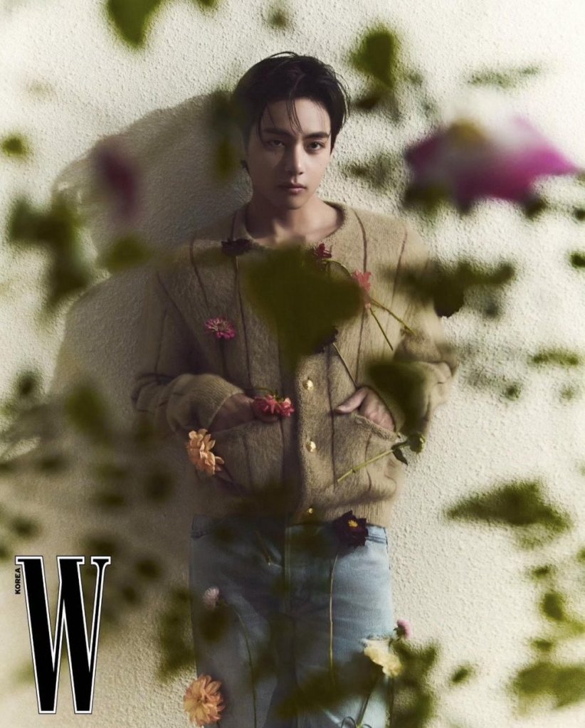 Spring is a season that symbolizes renewal, growth, and hope, themes that resonate deeply with V’s personal journey as an artist. In interviews leading up to the release of the W Korea photoshoot, V spoke about how spring has always been a time of reflection and rejuvenation for him. He explained that the photoshoot allowed him to express the peace and clarity he feels during this time of year. The overall mood of the photoshoot is serene and contemplative, with V embodying the essence of spring in every shot.