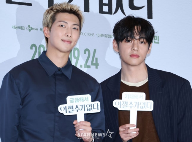 On the afternoon of September 22nd, BTS members RM (Kim Namjoon) and V (Kim Taehyung) drew the spotlight as they attended the VIP screening of the highly anticipated film “There’s No Choice” at the Yongsan CGV I-Park Mall in Yongsan-gu, Seoul. Their appearance quickly became one of the highlights of the event, with media outlets, fans, and fashion enthusiasts all turning their attention to the two global icons.